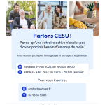 Rendez-vous le vendredi 29 mai 2026 à 14h30 à l’ARPAQ pour une conférence « Parlons CESU » présentée par la FEPEM (Fédération des particuliers employeurs). Gratuit – Sur inscription au 02.98.55.53.86 ou…