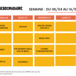 CALENDRIER DU 08 au 14 avril 2026 Pour agrandir l’image : Sur ordinateur: Clique droit sur l’image et sélectionner « ouvrir l’image dans un nouvel onglet » Sur smartphone: Appui long sur…