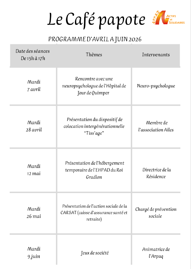 Rendez-vous deux mardis après-midi par mois au Bar « Le bistrot du Moulin » 17 rue du Moulin Vert à Quimper