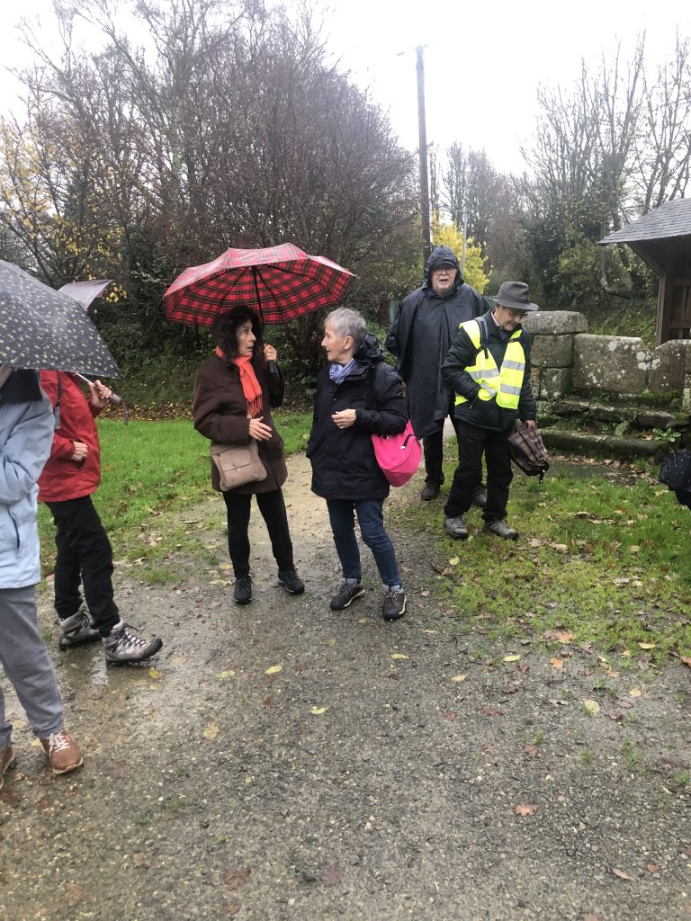 Nous marchons pendant un bon moment sur les petits sentiers où nous sommes à l’abri du vent puis nos pas nous mènent jusqu’aux VERGERS de MENEZ BRUG.