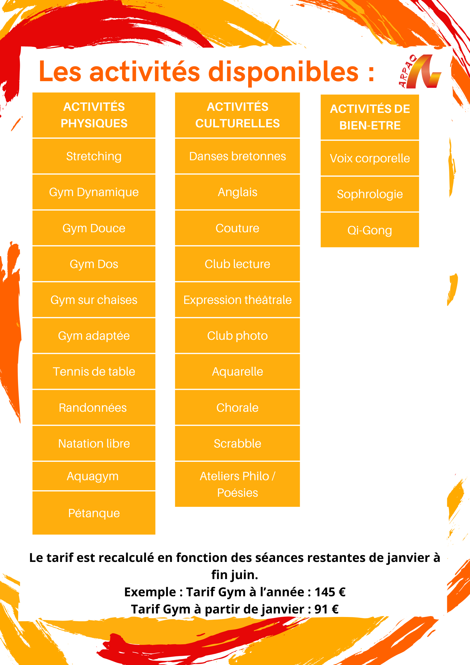 Il reste de la place aux activités suivantes :