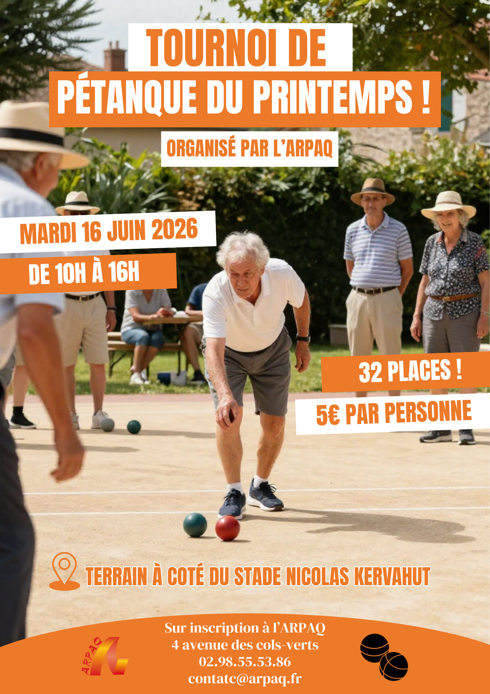 Rendez-vous à notre tournoi de pétanque le mardi 16 juin de 10h à 16h au terrain à côté du stade Nicolas Kervahut !